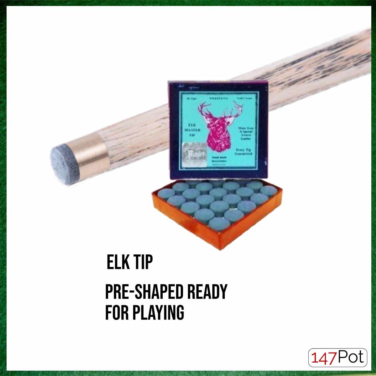 We recommend 9.5-10mm Tip size as an excellent all-rounder for Snooker/Pool players. All 147Pot Tips are pre-scuffed and ready for instant play