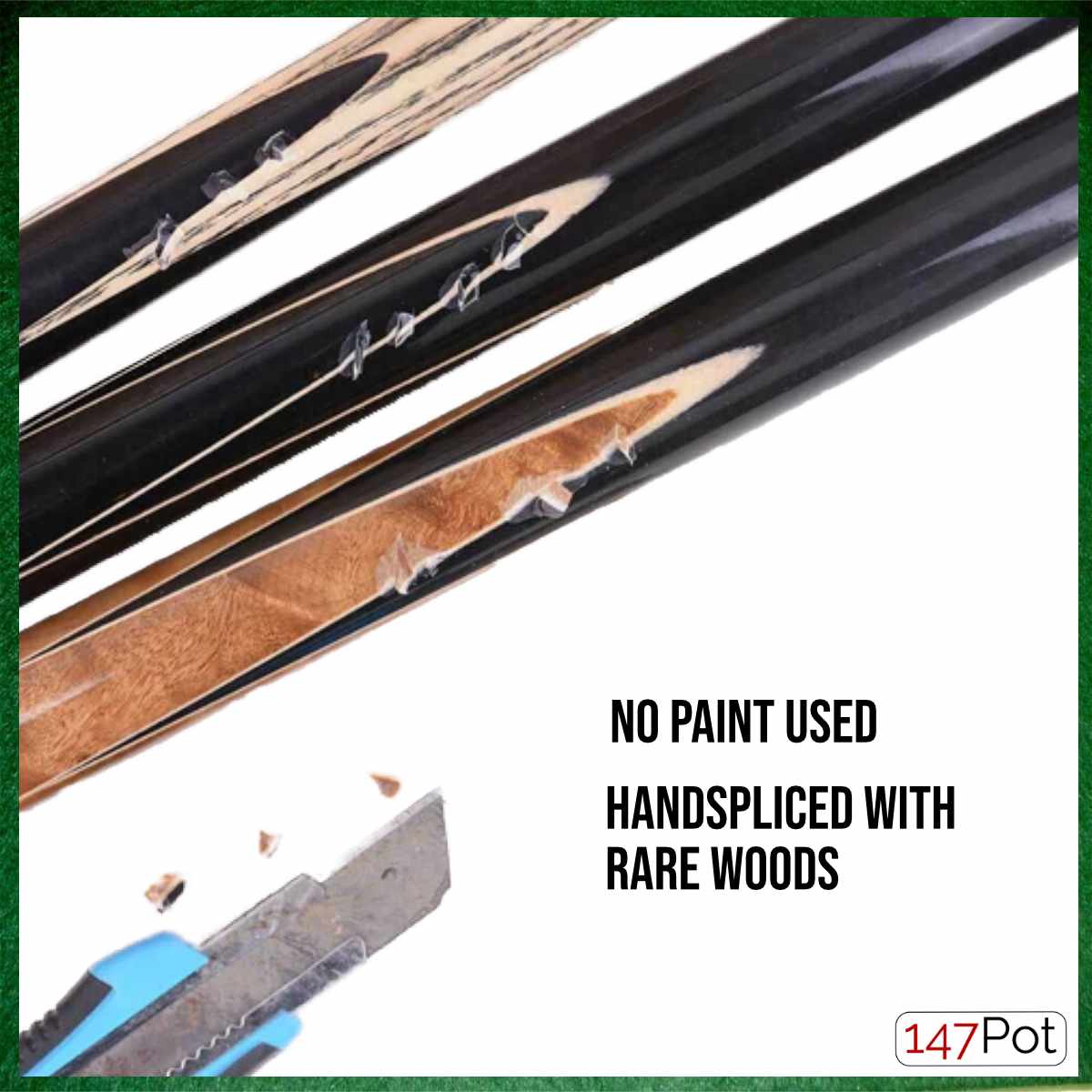 57" ¾ Jointed English Snooker/Pool Cue - Blue Maple Veneer & Ebony Craftsmanship