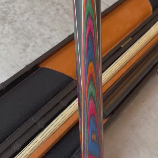✧ Butt: Hi-tech black wood (length 38cm) with 4 Secondary multi-coloured & black Hi-Tech wood Splices + Thick Maple Veneer add a stunning visual appeal