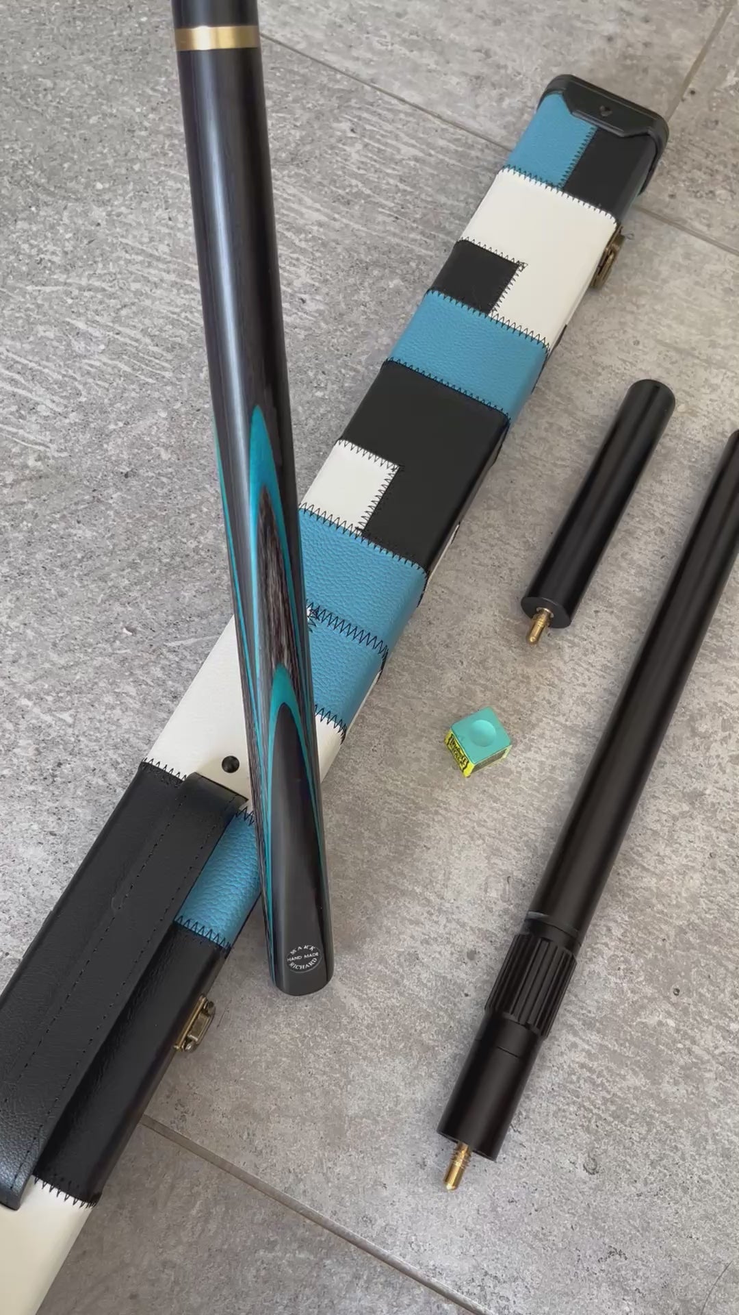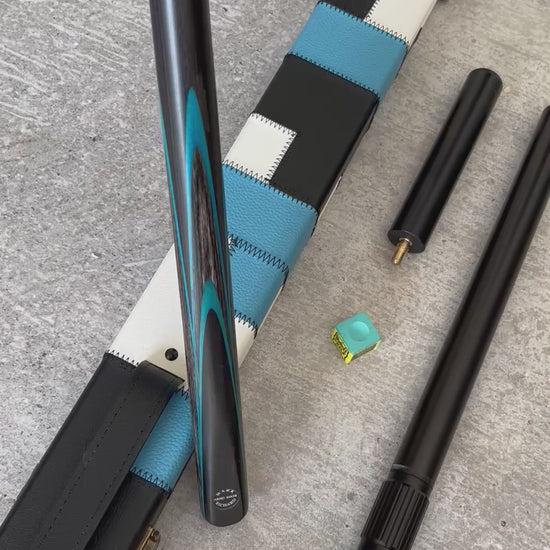 57" Snooker/Pool Cue + Case + Extensions Bundle :: Sleek Black & Blue Style